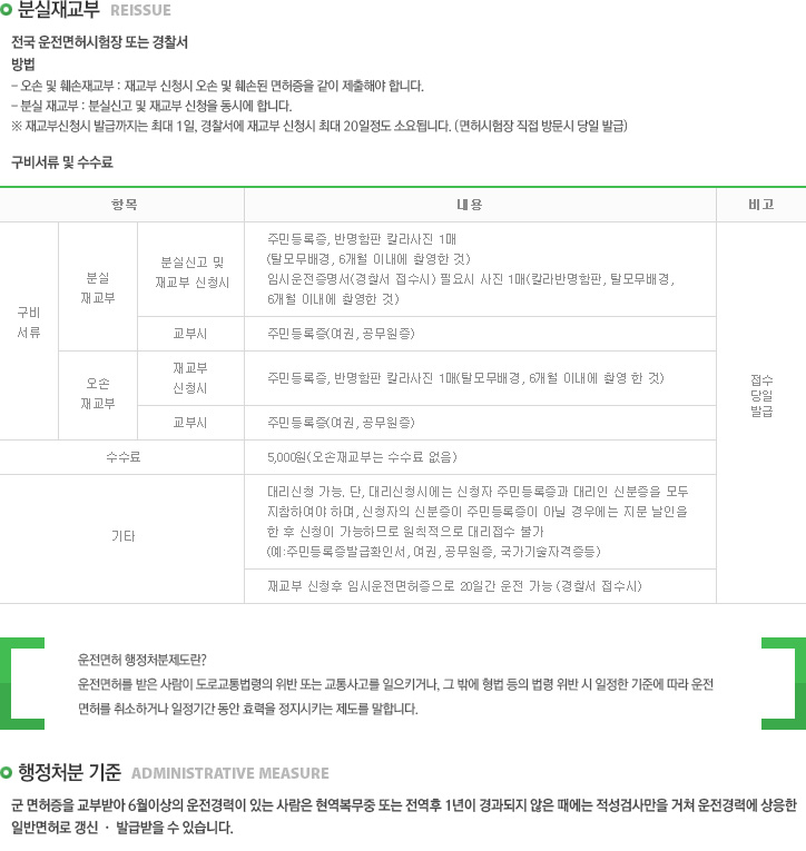 HOME > 면허정보 > 제도안내 > 분실재교부, 행정처분