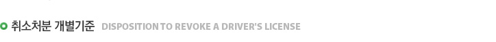 | 10 | 도로교통법 외에 다른 법령규정에 의하여 취소사유에 해당한 때 | 제78조산림법 제94조 | 취소 | * 시장, 군수 또는 지방산림관리청장의 취소처분의 요청이 있은 때 |