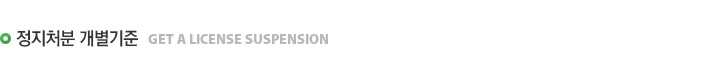 | 면허정지 | 법규위반 또는 교통사고로 인하여 운전 면허의 처분 벌점이 40점이상 되었을 때 | 1점을 1일씩계산 집행 | |